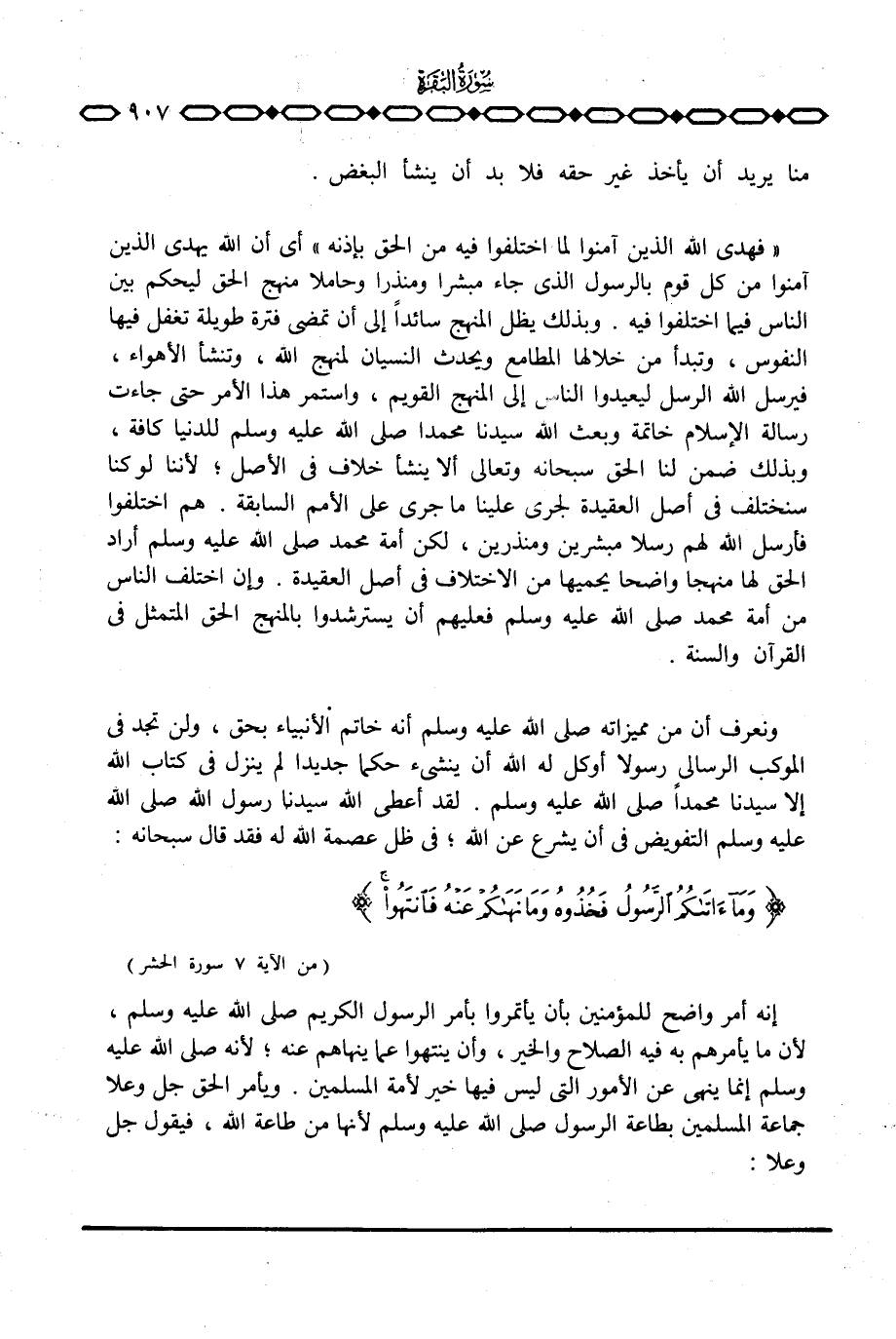 {فَهَدَى الله الذين آمَنُواْ لِمَا اختلفوا فِيهِ مِنَ الحق بِإِذْنِهِ} أي أن الله يهدي الذين آمنوا من كل قوم بالرسول الذي جاء مبشرا ومنذرا وحاملا منهج الحق ليحكم بين الناس فيما اختلفوا فيه. وبذلك يظل المنهج سائداً إلى أن تمضي فترة طويلة تغفل فيها النفوس، وتبدأ من خلالها المطامع ويحدث النسيان لمنهج الله، وتنشأ الأهواء، فيرسل الله الرسل ليعيدوا الناس إلى المنهج القويم، واستمر هذا الأمر حتى جاءت رسالة الإسلام خاتمة وبعث الله سيدنا محمداً صَلَّى اللَّهُ عَلَيْهِ وَسَلَّم َ للدنيا كافة، وبذلك ضمن لنا الحق سبحانه وتعالى ألا ينشأ خلاف في الأصل؛ لأننا لو كنا سنختلف في أصل العقيدة لجرى علينا ما جرى على الأمم السابقة. هم اختلفوا فأرسل الله لهم رسلا مبشرين ومنذرين، لكن أمة محمد صَلَّى اللَّهُ عَلَيْهِ وَسَلَّم َ أراد الحق لها منهجا واضحا يحميها من الاختلاف في أصل العقيدة. وإن اختلف الناس من أمة محمد صَلَّى اللَّهُ عَلَيْهِ وَسَلَّم َ فعليهم أن يسترشدوا بالمنهج الحق المتمثل في القرآن والسنة.