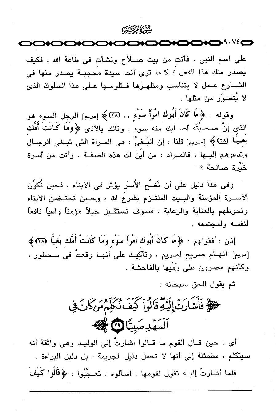 وقوله: {مَا كَانَ أَبُوكِ امرأ سَوْءٍ} [مريم: 28] الرجل السوء هو الذي إنْ صحبْتَه أصابك منه سوء، ونالك بالأذى {وَمَا كَانَتْ أُمُّكِ بَغِيّاً} [مريم: 28] قلنا: إن البَغيَّ: هي المرأة التي تبغي الرجال وتدعوهم إليها، فالمراد: من أين لك هذه الصفة، وأنت من أسرة خَيِّرة صالحة؟