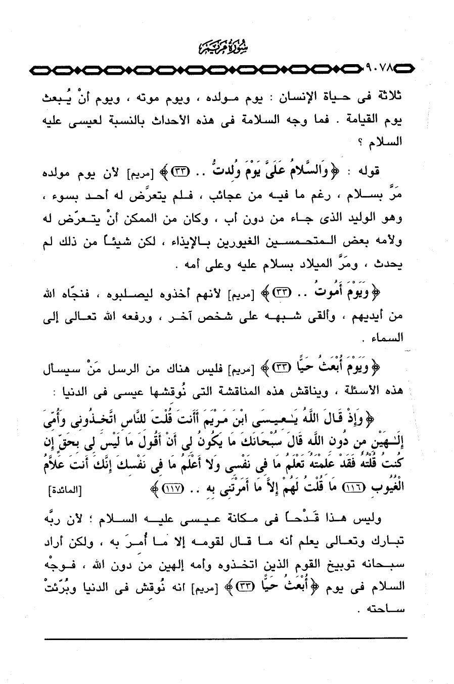 {وَيَوْمَ أَمُوتُ} [مريم: 33] لأنهم أخذوه ليصلبوه، فنجّاه الله من أيديهم، وألقى شبهه على شخص آخر، ورفعه الله تعالى إلى السماء.