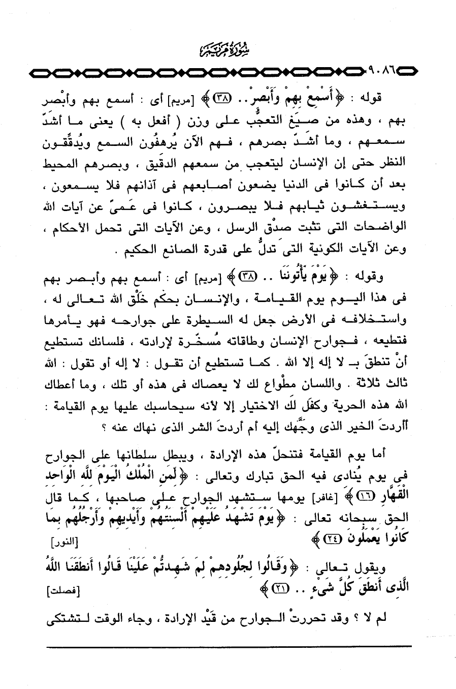 أما يوم القيامة فتنحلّ هذه الأرادة، ويبطل سلطانها على الجوارح في يوم يُنادِي فيه الحق تبارك وتعالى: {لِّمَنِ الملك اليوم لِلَّهِ الواحد القهار} [غافر: 16] يومها ستشهد الجوارح على صاحبها، وكما قال الحق سبحانه تعالى: {يَوْمَ تَشْهَدُ عَلَيْهِمْ أَلْسِنَتُهُمْ وَأَيْدِيهِمْ وَأَرْجُلُهُمْ بِمَا كَانُواْ يَعْمَلُونَ} [النور: 24] .