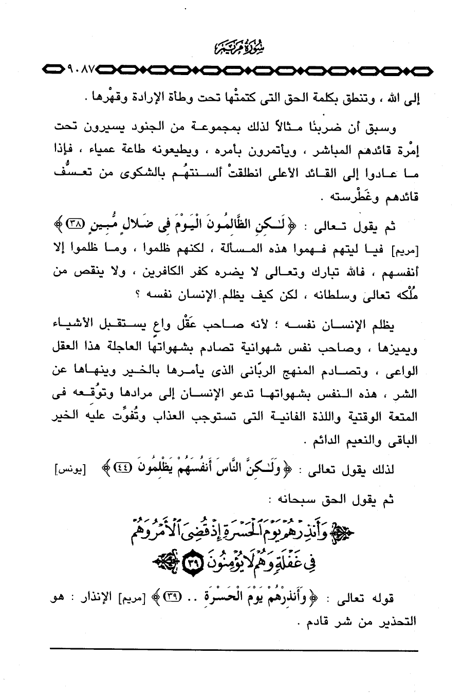 ثم يقول الحق سبحانه: {وَأَنْذِرْهُمْ يَوْمَ الحسرة}
