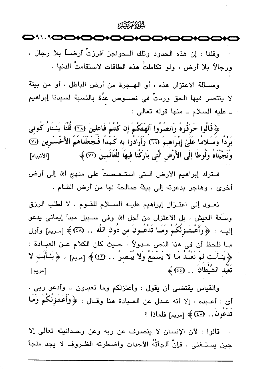 ومسألة الاعتزال هذه، أو الهجرة من أرض الباطل، أو من بيئة لا ينتصر فيها الحق وردتْ في نصوص عِدَّة بالنسبة لسيدنا إبراهيم عليه السلام منها قوله تعالى: