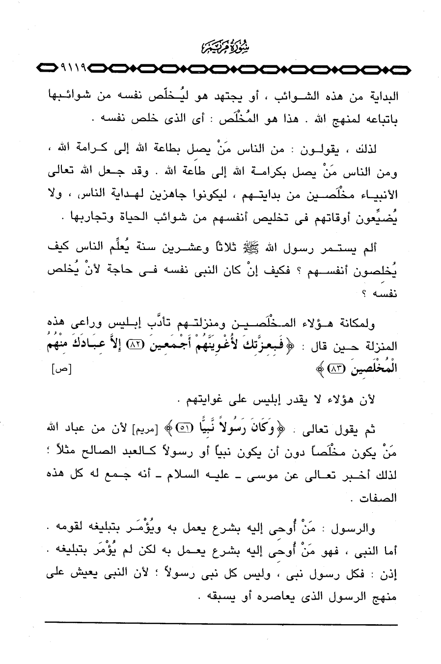 ألم يستمر رسول الله صَلَّى اللَّهُ عَلَيْهِ وَسَلَّم َ ثلاثاً وعشرين سنة يُعلِّم الناس كيف يُخِلصون أنفسهم؟ فكيف إنْ كان النبي نفسه في حاجة لأنْ يُخلص نفسه؟