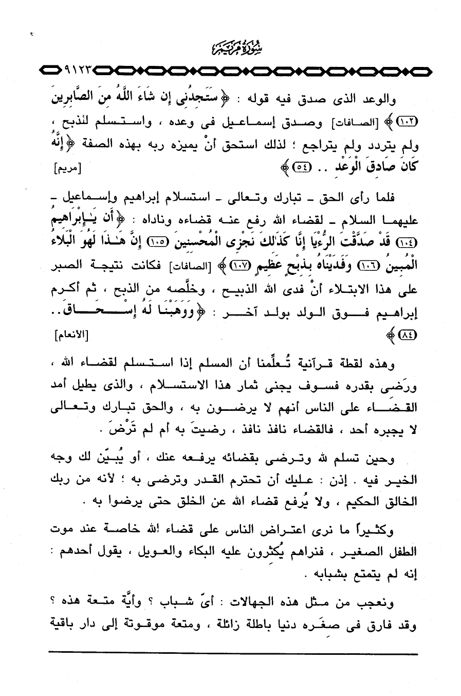 وكثيراً ما نرى اعتراض الناس على قضاء الله خاصة عند موت الطفل الصغير، فنراهم يُكثِرون عليه البكاء والعويل، يقول أحدهم: إنه لم يتمتع بشبابه.