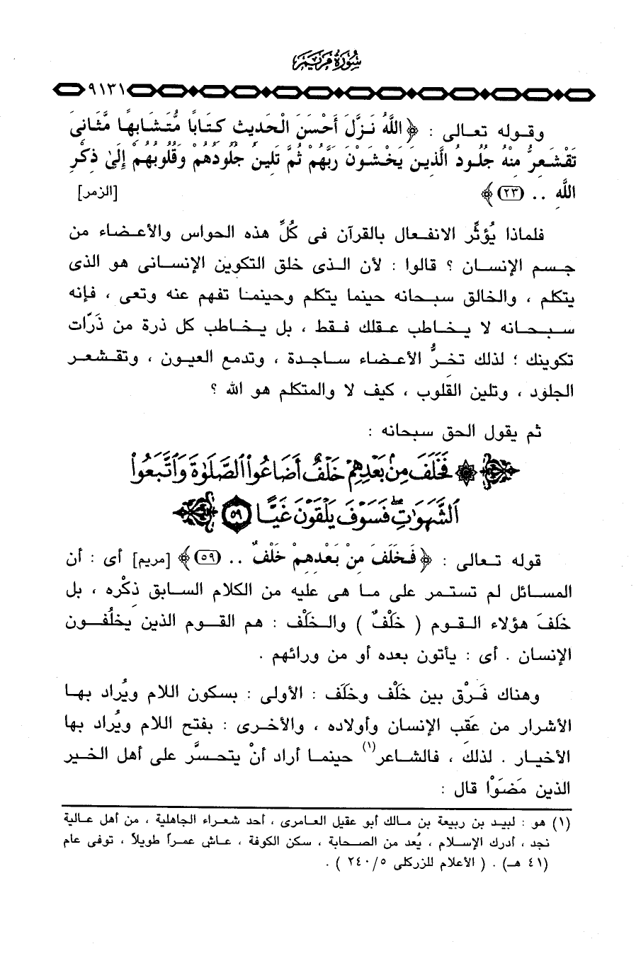 قوله تعالى: {فَخَلَفَ مِن بَعْدِهِمْ خَلْفٌ} [مريم: 59] أي: أن المسائل لم تستمر على ما هي عليه من الكلام السابق ذِكْره، بل خَلفَ هؤلاء القوم (خَلْفٌ) والخَلْف: هم القوم الذين يخلُفون الإنسان: أي: يأتون بعده أو من ورائهم.