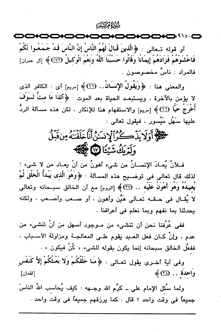 ولما سُئِل الإمام علي كرَّم الله وجهه: كيف يُحاسِب اللهُ الناسَ جميعاً في وقت واحد؟ قال: كما يرزقهم جميعاً في وقت واحد.
