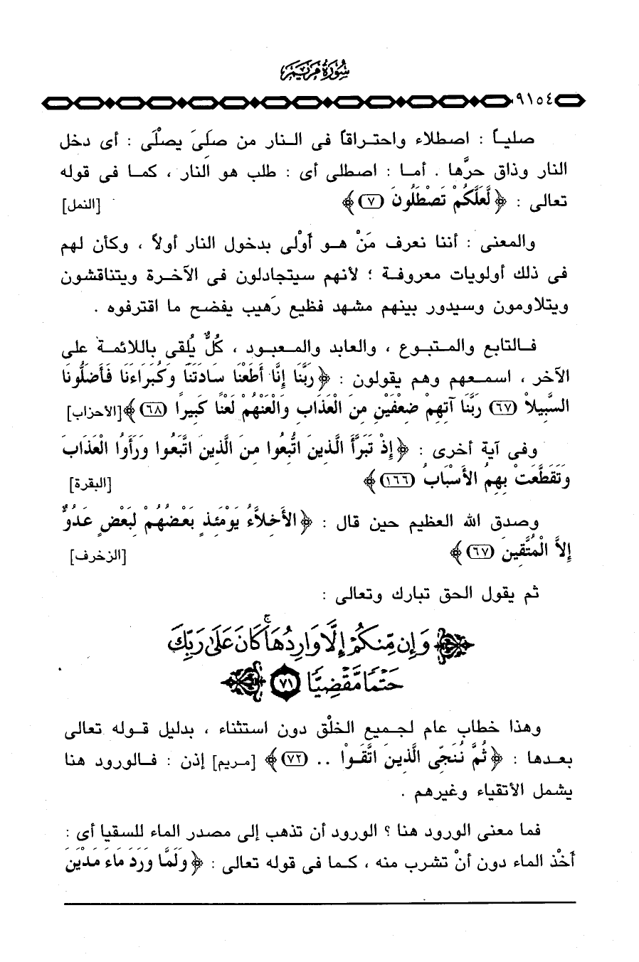 وهذا خطاب عام لجميع الخلْق دون استثناء، بدليل قوله تعالى بعدها: {ثُمَّ نُنَجِّي الذين اتقوا} [مريم: 72] إذن: فالورود هنا يشمل الأتقياء وغيرهم.