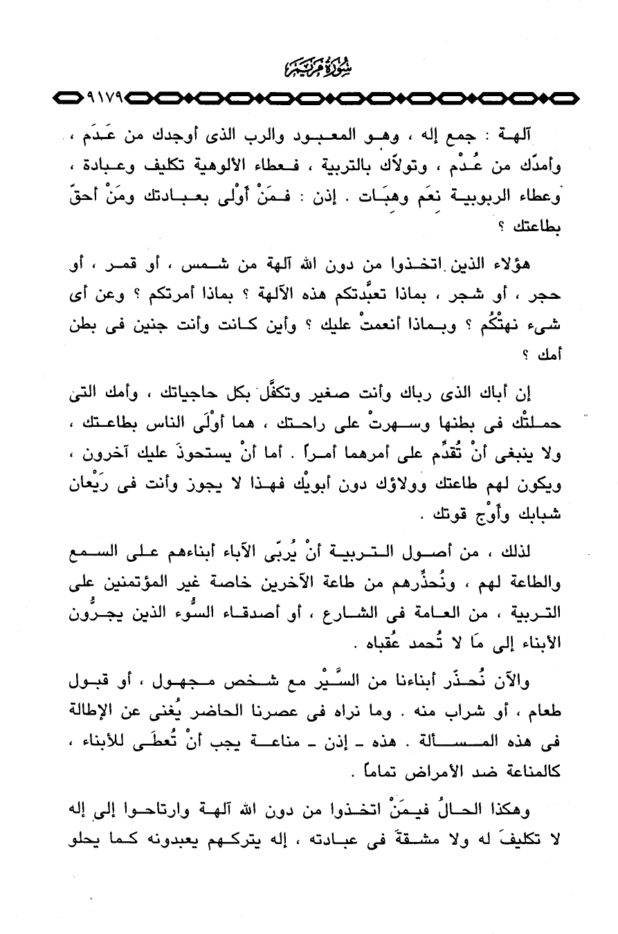 هؤلاء الذين اتخذوا من دون الله آلهة من شمس، أو قمر، أو حجر، أو شجر، بماذا تعبَّدتكم هذه الآلهة؟ بماذا أمرتكم؟ وعن أي شيء نهتْكُم؟ وبماذا أنعمتْ عليك؟ وأين كانت وأنت جنين في بطن أمك؟