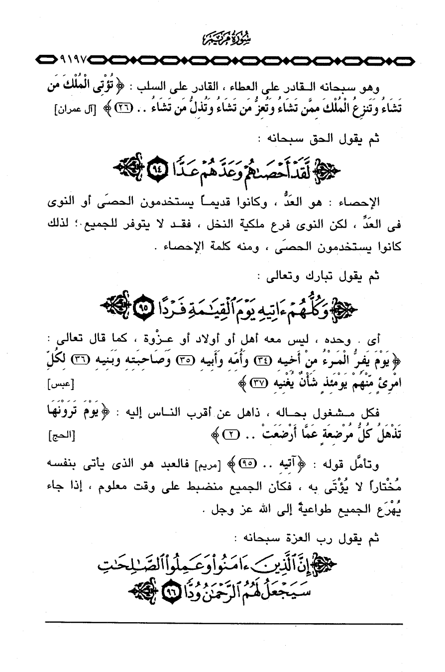 وتأمَّل قوله: {آتِيهِ} [مريم: 95] فالعبد هو الذي يأتي بنفسه مُخْتاراً لا يُؤْتَى به، فكأن الجميع منضبط على وقت معلوم، إذا جاء يُهْرَع الجميع طواعيةً إلى الله عَزَّ وَجَلَّ.