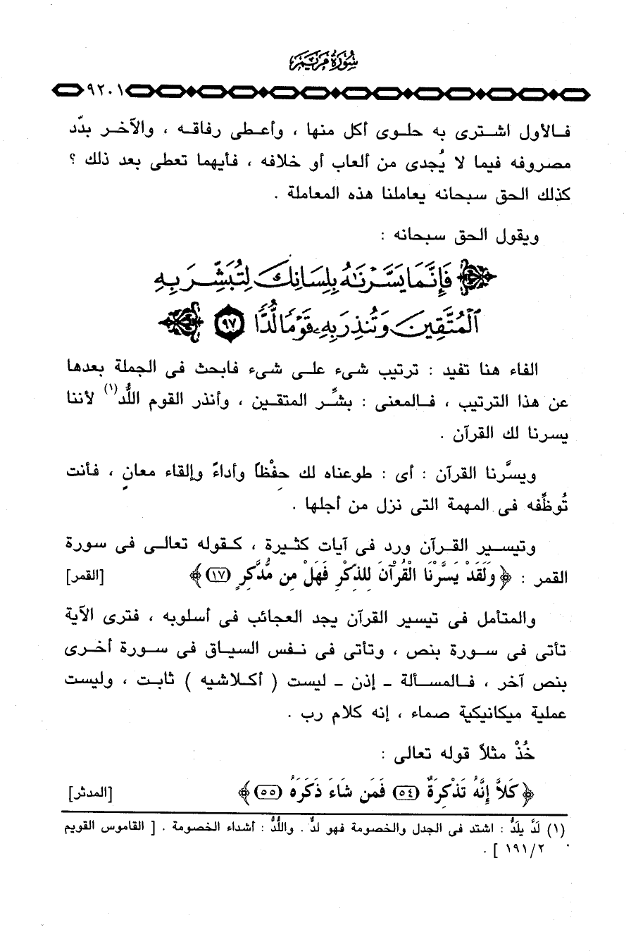 ويقول الحق سبحانه: {فَإِنَّمَا يَسَّرْنَاهُ بِلِسَانِكَ}
