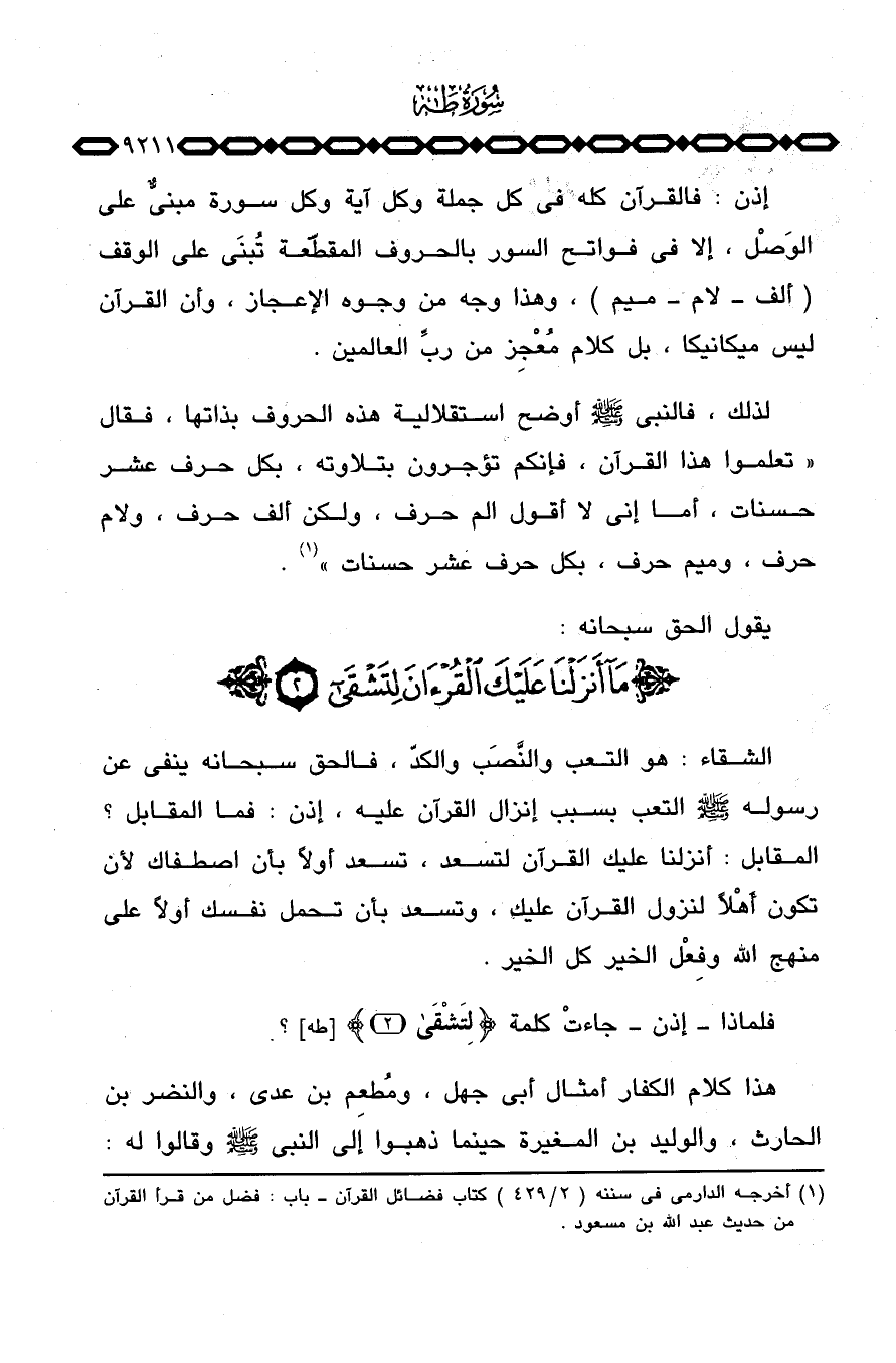 يقول الحق سبحانة: {مَآ أَنَزَلْنَا عَلَيْكَ القرآن}