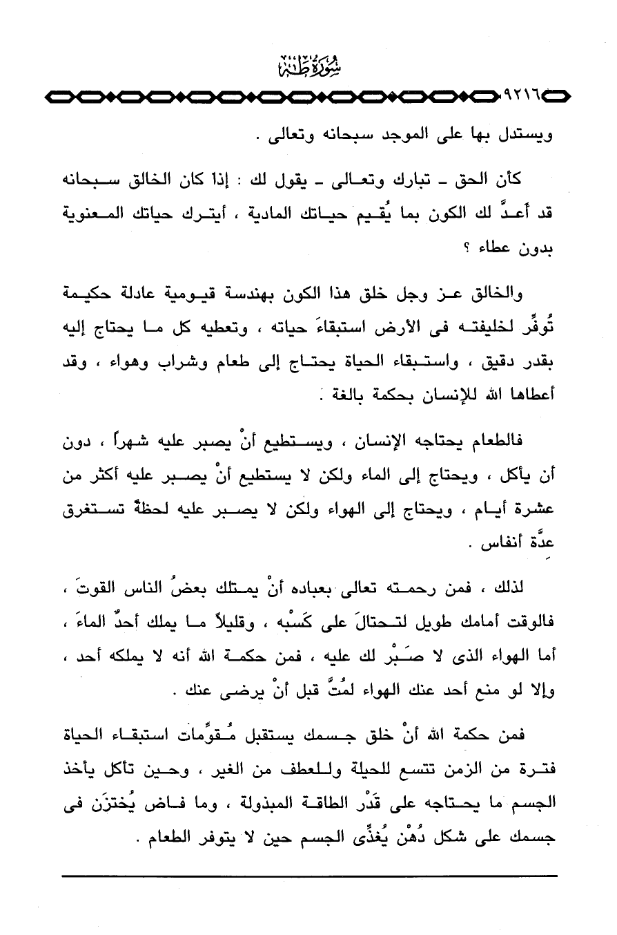 كأن الحق تبارك وتعالى يقول لك: إذا كان الخالق سبحانه قد أعدَّ لك الكون بما يُقيم حياتك المادية، أيترك حياتك المعنوية بدون عطاء؟