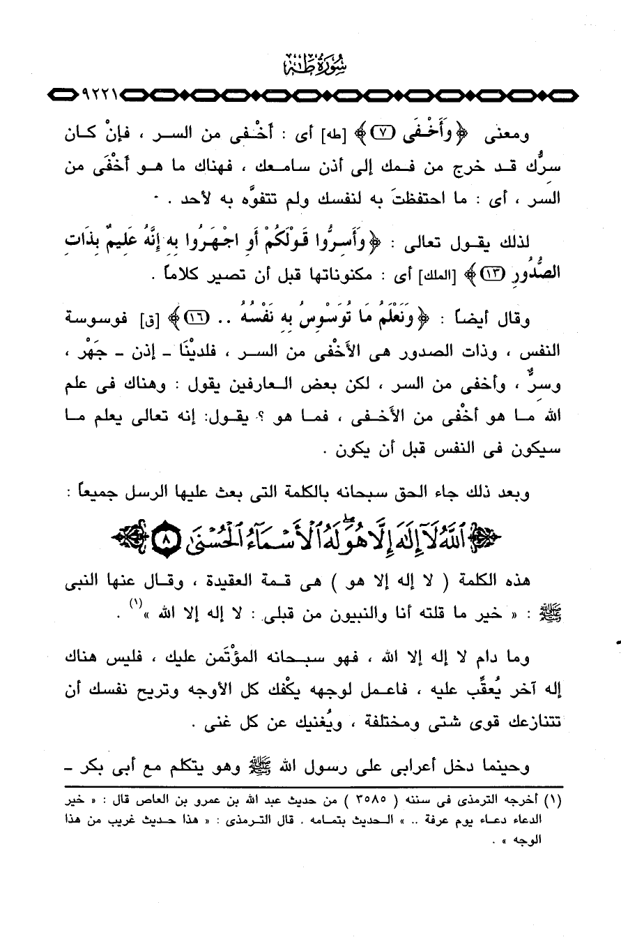 هذه الكلمة (لا إله إلا هو) هي قمة العقيدة، وقال عنها النبي صَلَّى اللَّهُ عَلَيْهِ وَسَلَّم َ: «خير ما قلته أنا والنبيون من قبلي: لا إله إلا الله» .