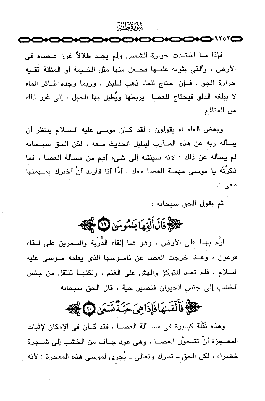 وبعض العلماء يقولون: لقد كان موسى عليه السلام ينتظر أن يسأله ربه عن هذه المآرب ليطيل الحديث معه، لكن الحق سبحانه لم يسأله عن ذلك؛ لأنه سينقله إلى شيء أهم من مسألة العصا، فما ذكْرتَه يا موسى مهمة العصا معك، أمّا أنا فأريد أنْ أخبرك بمهمتها معي: