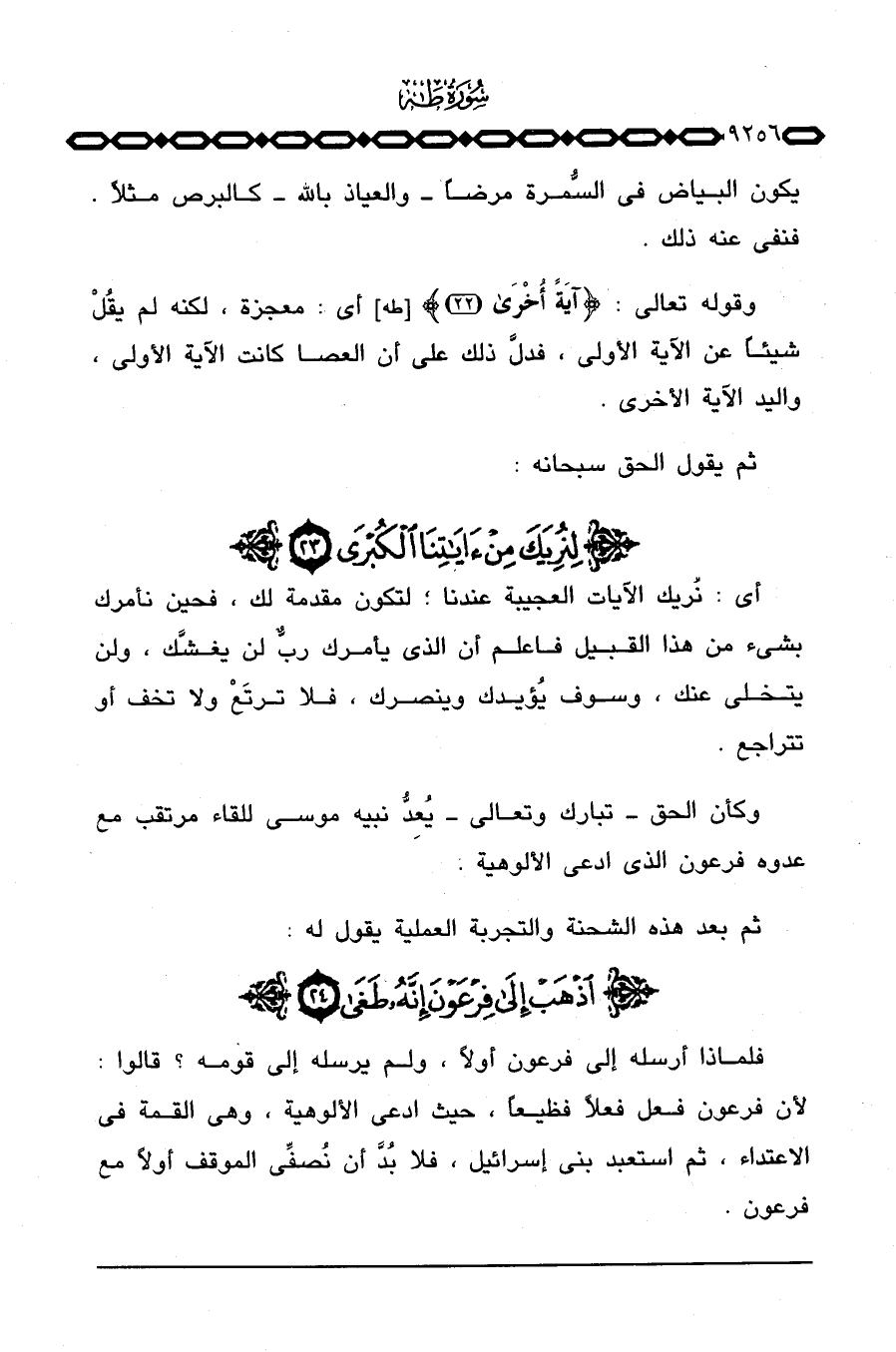 وقوله تعالى: {آيَةً أخرى} [طه: 22] أي: معجزة، لكنه لم يقُلْ شيئاً عن الآية الأولى، فدلَّ ذلك على أن العصا كانت الآية الأولى، واليد الآية الأخرى.
