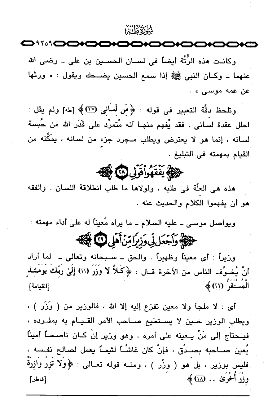 وتلحظ دِقَّة التعبير في قوله: {مِّن لِّسَانِي} [طه: 27] ولم يقل: احلل عقدة لساني. فقد يُفهم منها أنه مُتمرِّد على قَدَر الله من حُبسة لسانه، إنما هو لا يعترض ويطلب مجرد جزءٍ من لسانه، يمَكِّنه من القيام بمهمته في التبليغ.