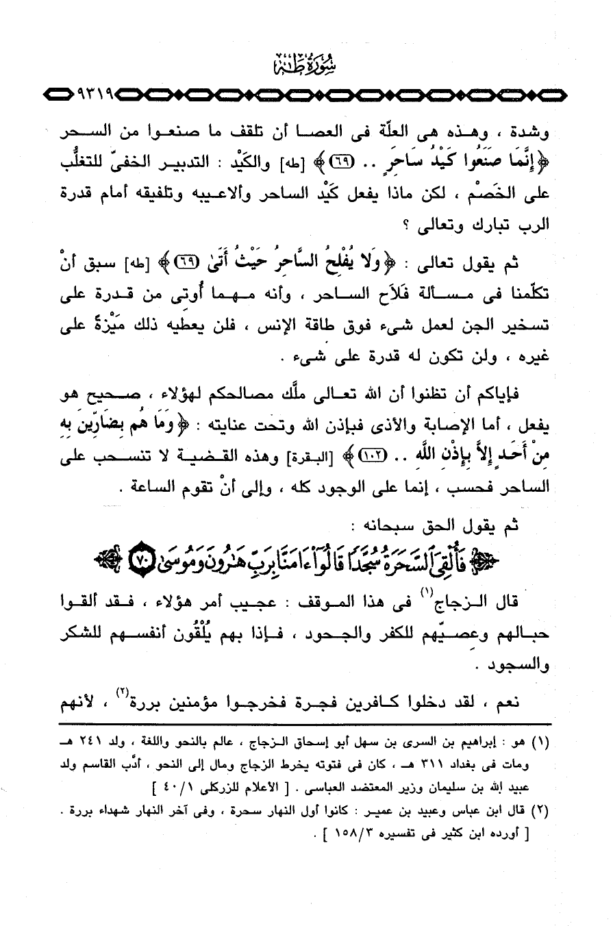 قال الزجاج في هذا الموقف: عجيب أمر هؤلاء، فقد ألقوا حبالهم وعِصيّهم للكفر والجحود، فإذا بهم يُلْقُون أنفسهم للشكر والسجود.