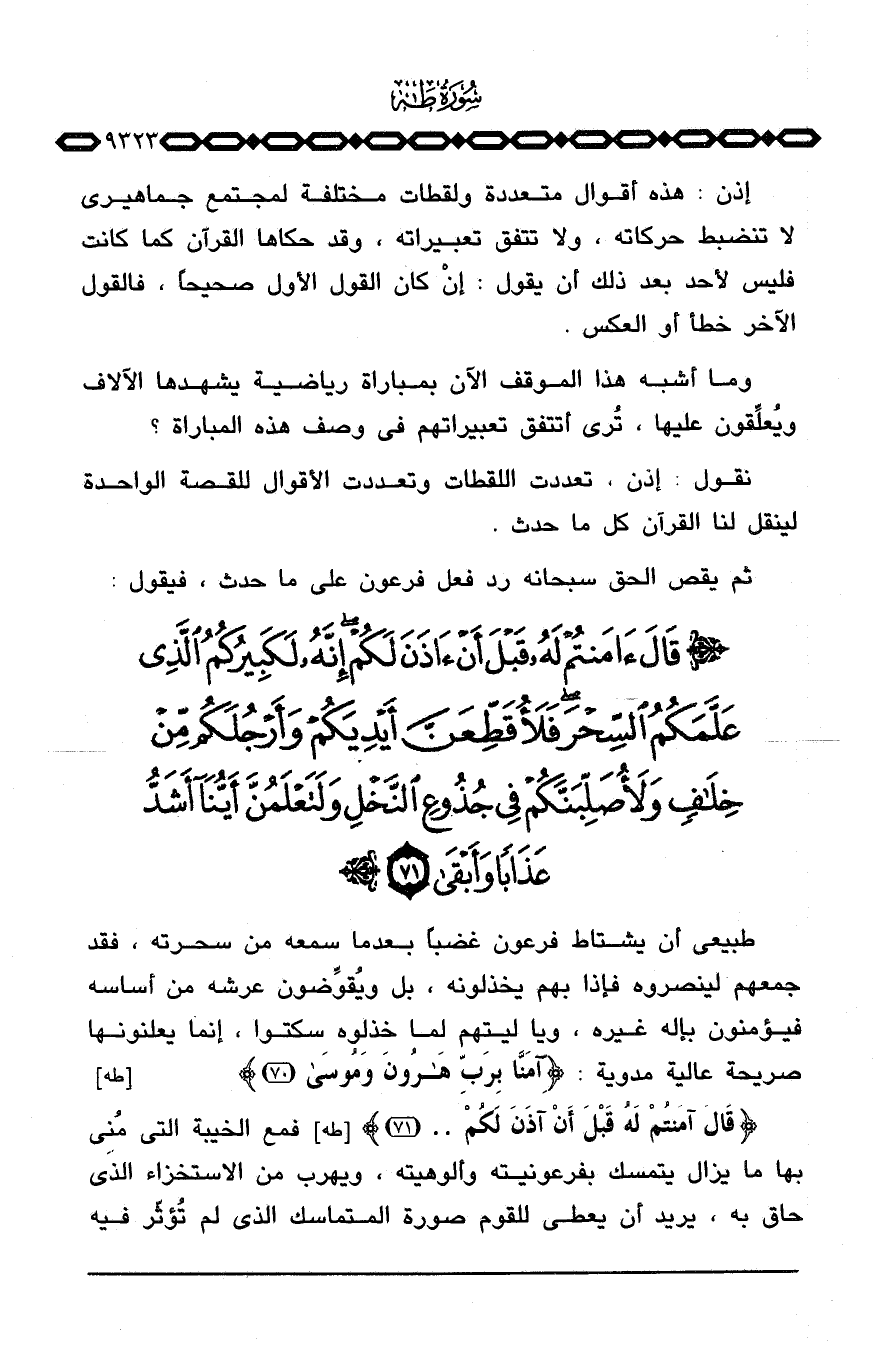 {قَالَ آمَنتُمْ لَهُ قَبْلَ أَنْءَاذَنَ لَكُمْ ... } [طه: 71] فمع الخيبة التي مُنِي بها ما يزال يتمسك بفرعونيته وألوهيته، ويهرب من الاستخزاء الذي حاق به، يريد أن يعطي للقوم صورة المتماسك الذي لم تُؤثّر فيه