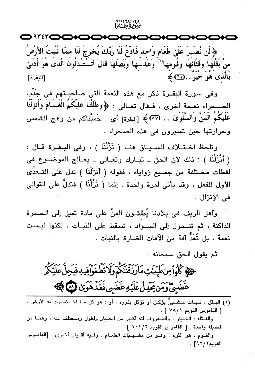 {لَن نَّصْبِرَ على طَعَامٍ وَاحِدٍ فادع لَنَا رَبَّكَ يُخْرِجْ لَنَا مِمَّا تُنْبِتُ الأرض مِن بَقْلِهَا وَقِثَّآئِهَا وَفُومِهَا وَعَدَسِهَا وَبَصَلِهَا قَالَ أَتَسْتَبْدِلُونَ الذي هُوَ أدنى بالذي هُوَ خَيْرٌ} [البقرة: 61] .