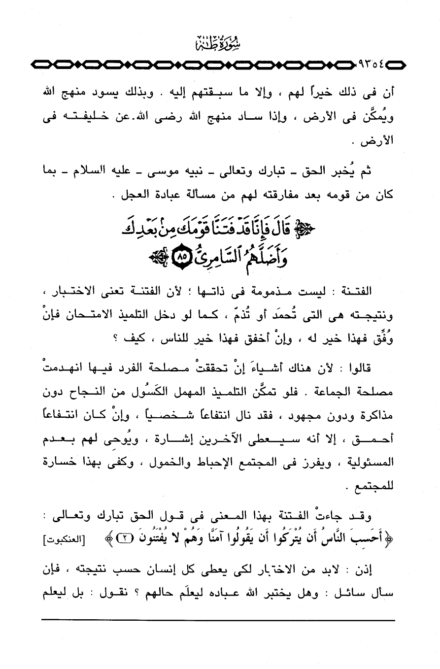 ثم يُخبر الحق تبارك وتعالى نبيه موسى عليه السلام بما كان من قومه بعد مفارقته لهم من مسألة عبادة العجل.