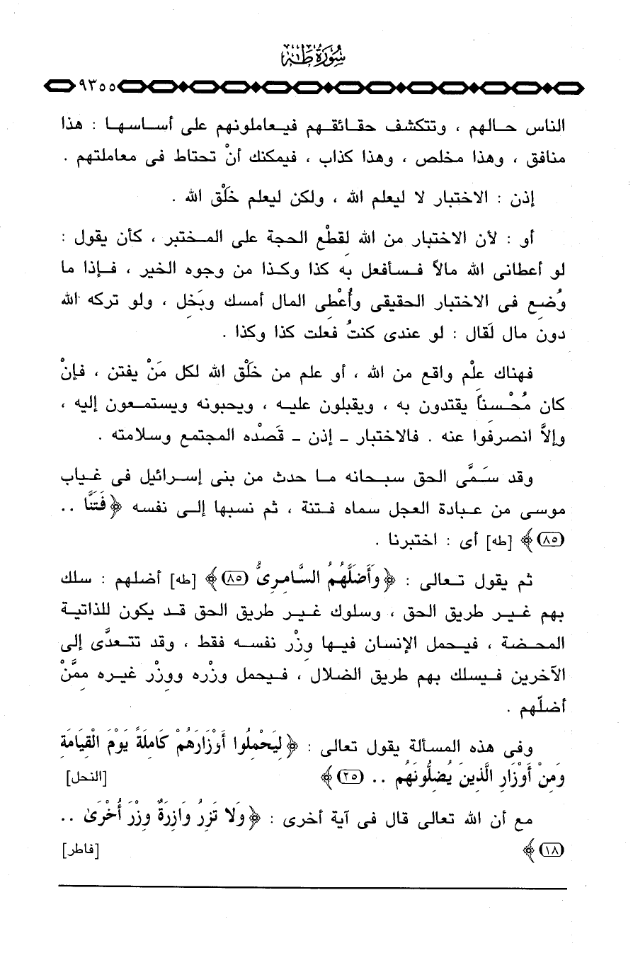 فهناك عِلْم واقع من الله، أو علم من خَلْق الله لكل مَنْ يفتن، فإنْ كان مُحْسِناً يقتدون به، ويقبلون عليه، ويحبونه ويستمعون إليه، وإلاَّ انصرفوا عنه. فالاختبار إذن قَصْده المجتمع وسلامته.