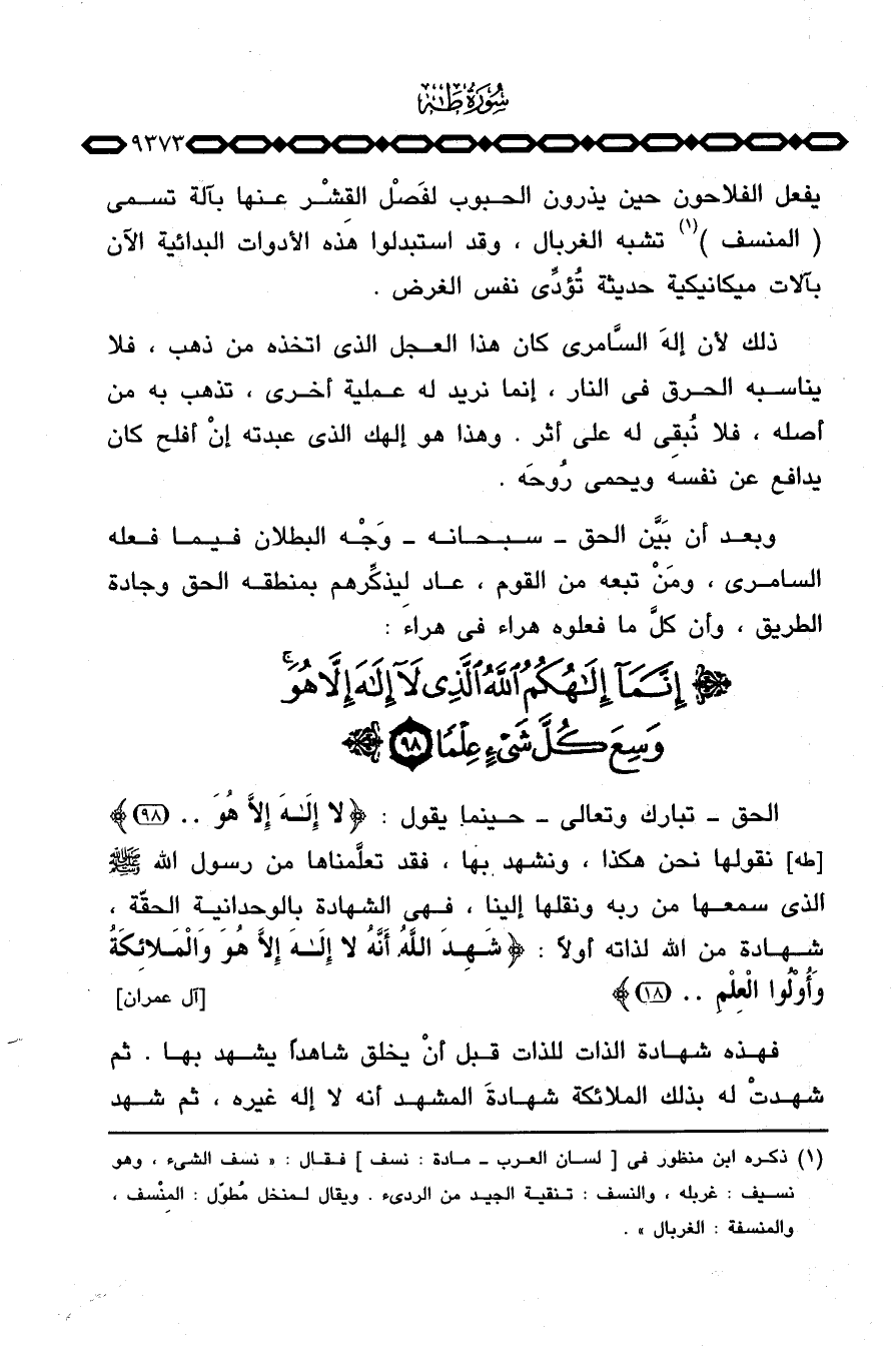 الحق تبارك وتعالى حينما يقول: {لا إله إِلاَّ هُوَ} [طه: 98] نقولها نحن هكذا، ونشهد بها، فقد تعلَّمناها من رسول الله صَلَّى اللَّهُ عَلَيْهِ وَسَلَّم َ الذي سمعها من ربه ونقلها إلينا، فهي الشهادة بالوحدانية الحقّة، شهادة من الله لذاته أولاً: {شَهِدَ الله أَنَّهُ لاَ إله إِلاَّ هُوَ والملائكة وَأُوْلُواْ العلم} [آل عمران: 18] .
