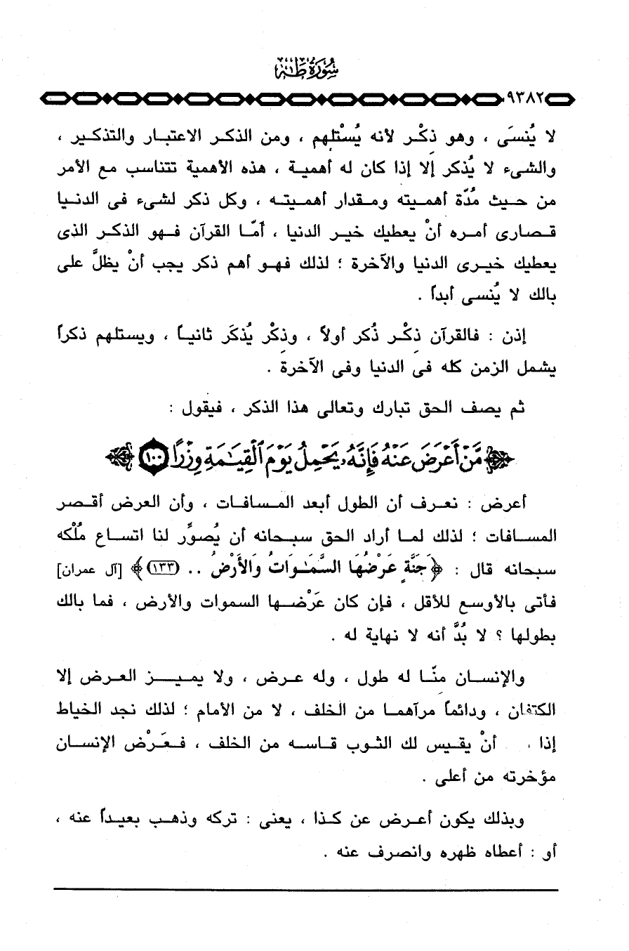 لا يُنسَى، وهو ذِكْر لأنه يُسْتلهم، ومن الذكر الاعتبار والتذكير، والشيء لا يُذكر إلا إذا كان له أهمية، هذه الأهمية تتناسب مع الأمر من حيث مُدّة أهميته ومقدار أهميته، وكل ذكر لشيء في الدنيا قصارى أمره أنْ يعطيك خير الدنيا، أمّا القرآن فهو الذكر الذي يعطيك خير الدنيا والآخرة؛ لذلك فهو أهم ذكر يجب أنْ يظلَّ على بالك لا يُنسى أبداً.
