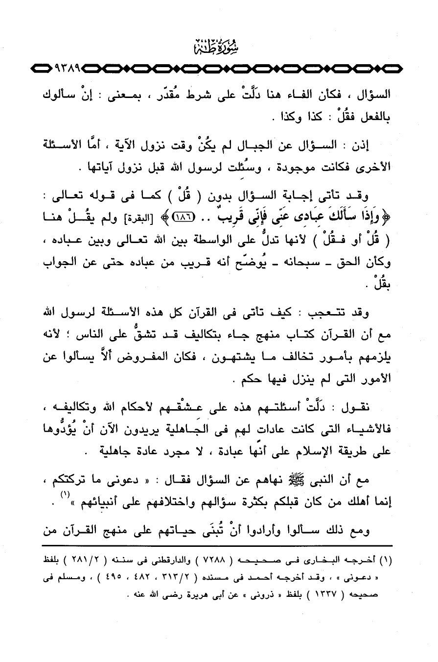 مع أن النبي صَلَّى اللَّهُ عَلَيْهِ وَسَلَّم َ نهاهم عن السؤال فقال: «دعوني ما تركتكم، إنما أهلك من كان قبلكم بكثرة سؤالهم واختلافهم على أنبيائهم» .