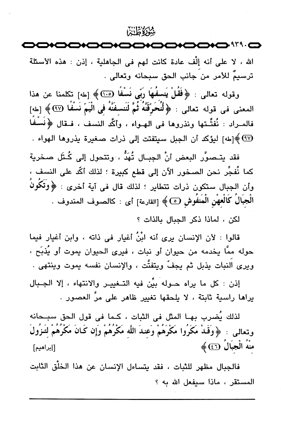 وقوله تعالى: {فَقُلْ يَنسِفُهَا رَبِّي نَسْفاً} [طه: 105] تكلمنا عن هذا المعنى في قوله تعالى: {لَّنُحَرِّقَنَّهُ ثُمَّ لَنَنسِفَنَّهُ فِي اليم نَسْفاً} [طه: 97] فالمراد: نُفتِّتها ونذروها في الهواء، وأكَّد النسف، فقال {نَسْفاً} [طه: 97] ليؤكد أن الجبل سيتفتت إلى ذرات صغيرة يذروها الهواء.