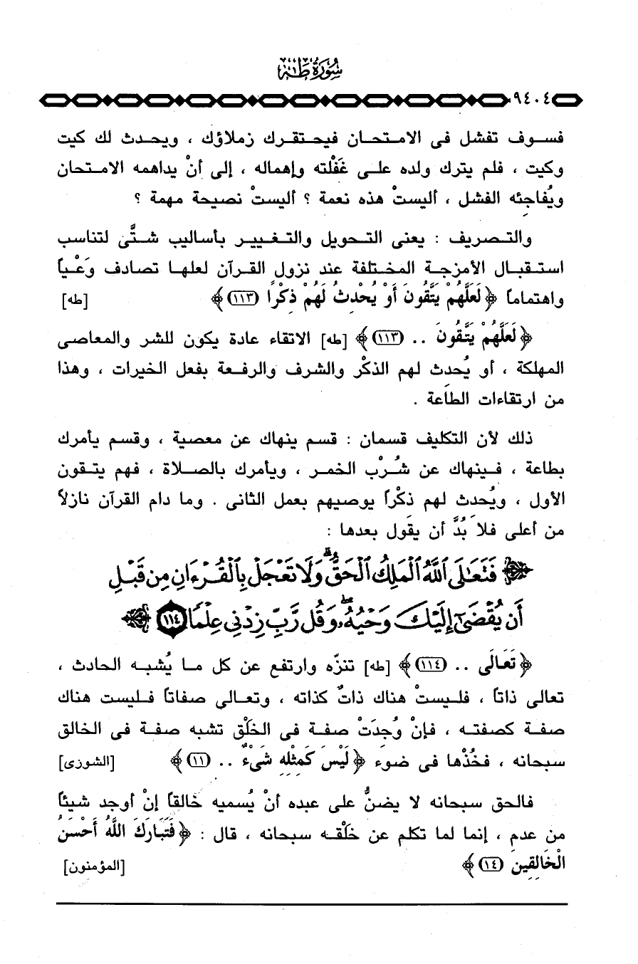 {لَعَلَّهُمْ يَتَّقُونَ} [طه: 113] الاتقاء عادة يكون للشر والمعاصي المهلكة، أو يُحدِث لهم الذكْر والشرف والرفعة بفعل الخيرات، وهذا من ارتقاءات الطاعة.