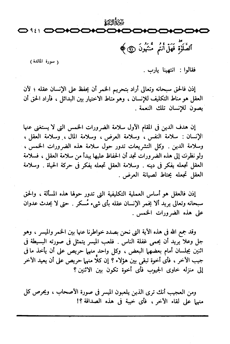 الصلاة فَهَلْ أَنْتُمْ مُّنتَهُونَ} [المائدة: 90 - 91]