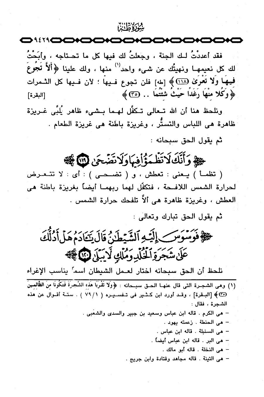 فقد أعددْتُ لك الجنة، وجعلتُ لك فيها كل ما تحتاجه، وأبَحْتُ لك كل نعيمها ونهيتُك عن شيء واحد منها، ولك علينا {أَلاَّ تَجُوعَ فِيهَا وَلاَ تعرى} [طه: 118] فلن تجوع فيها؛ لأن فيها كل الثمرات {وَكُلاَ مِنْهَا رَغَداً حَيْثُ شِئْتُمَا} [البقرة: 35] .