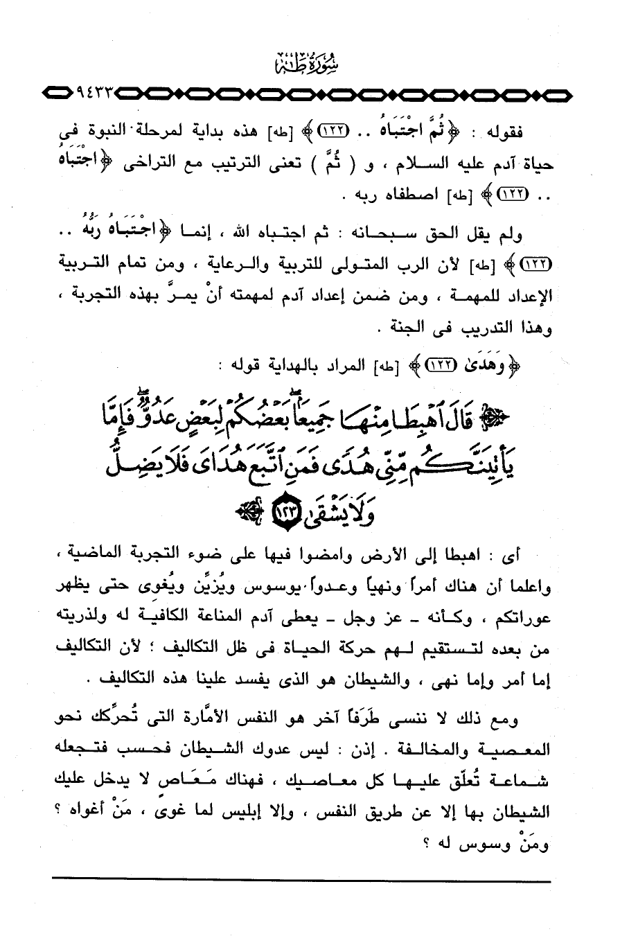 {وهدى} [طه: 122] المراد بالهداية قوله: {قَالَ اهبطا مِنْهَا جَمِيعاً}