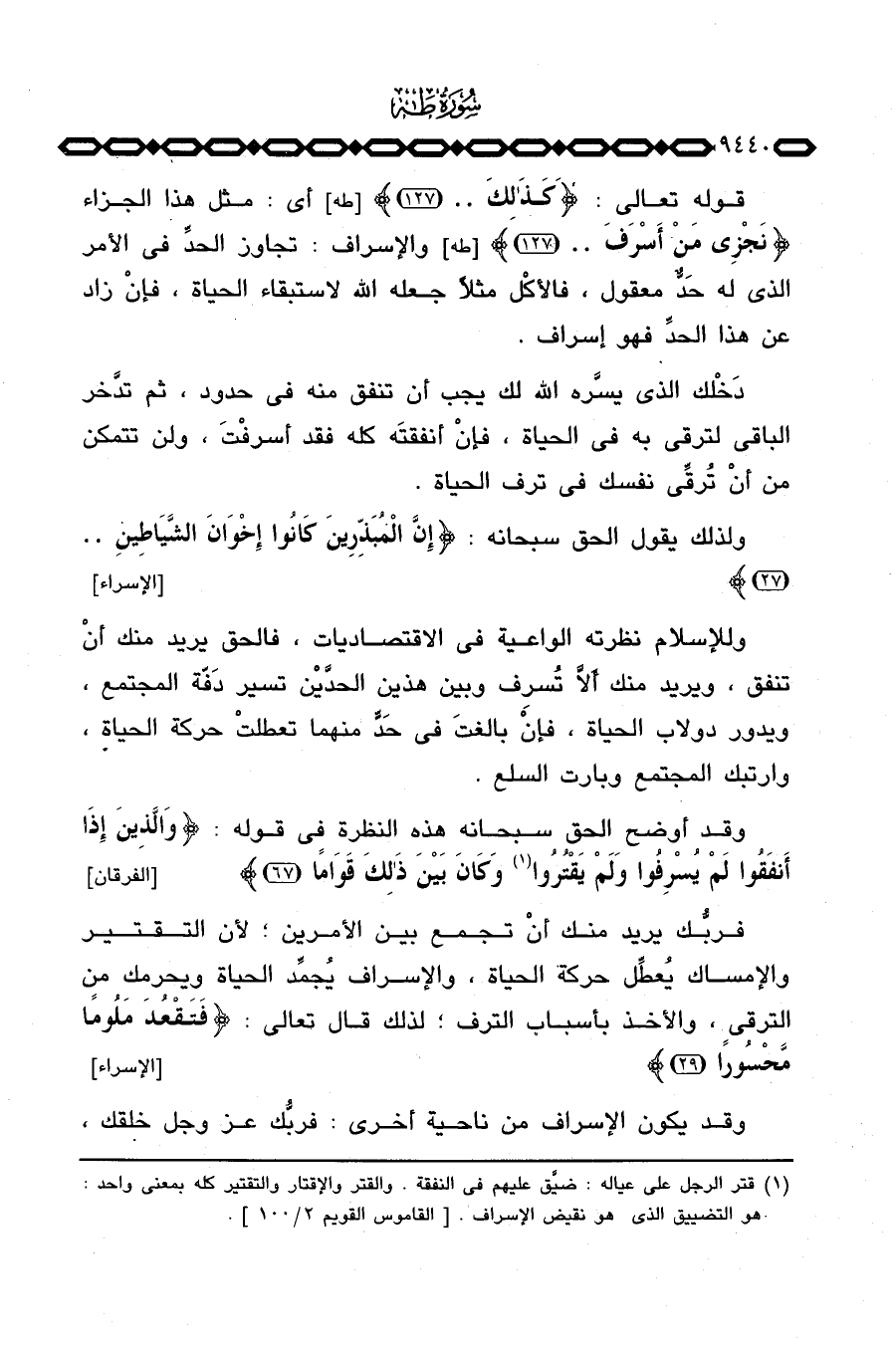 دَخْلك الذي يسَّره الله لك يجب أن تنفق منه في حدود، ثم تدَّخر الباقي لترقى به في الحياة، فإنْ أنفقتَه كله فقد أسرفْتَ، ولن تتمكن من أن تُرقِّى نفسك في ترف الحياة.