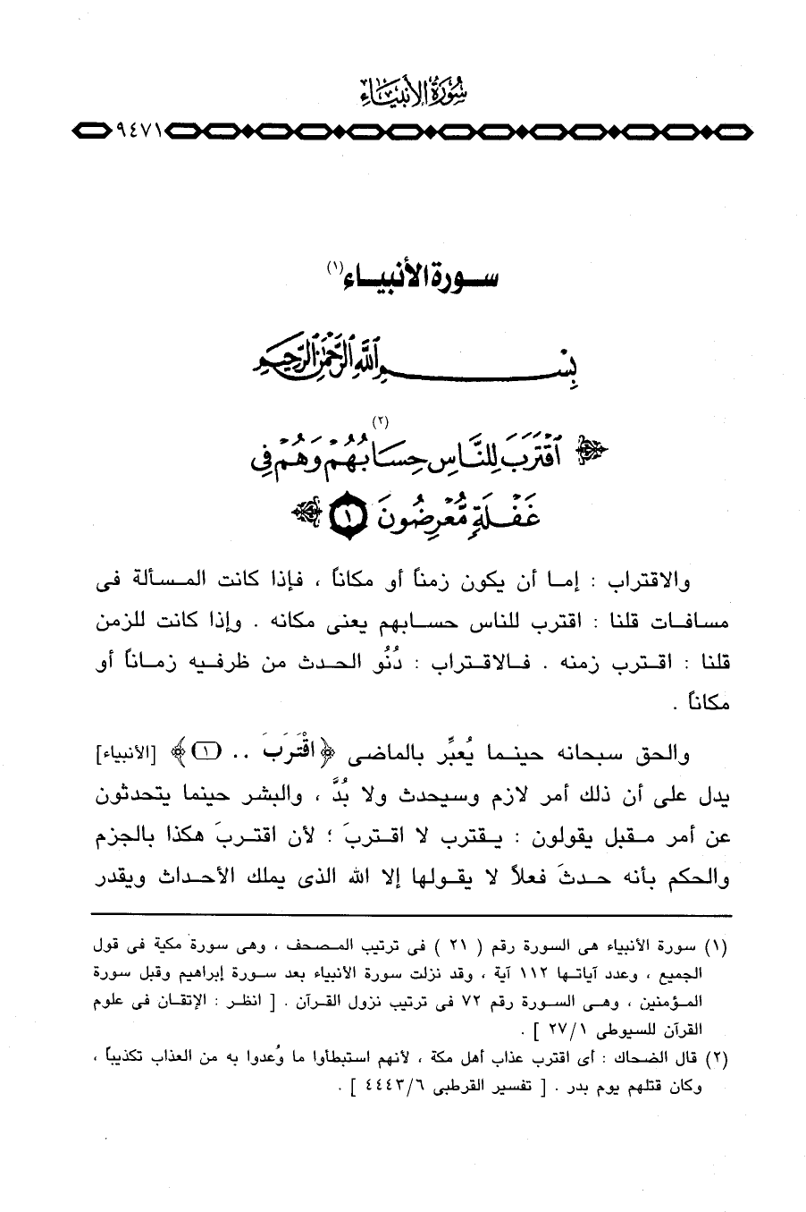 والحق سبحانه حينما يُعبِّر بالماضي {اقترب} [الأنبياء: 1] يدل على أن ذلك أمر لازم وسيحدث ولا بُدَّ، والبشر حينما يتحدثون عن أمر مقبل يقولون: يقترب لا اقتربَ؛ لأن اقتربَ هكذا بالجزم والحكم بأنه حدثَ فعلاً لا يقولها إلا الله الذي يملك الأحداث ويقدر