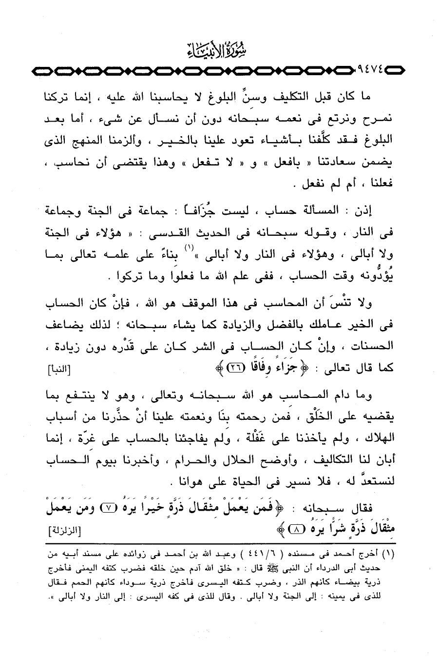 إذن: المسألة حساب، ليست جُزَافاً، جماعة في الجنة وجماعة في النار، وقوله سبحانه في الحديث القدسي: «هؤلاء في الجنة ولا أبالي، وهؤلاء في النار ولا أبالي» بِناءً على علمه تعالى بما يُؤدُّونه وقت الحساب، ففي علم الله ما فعلوا وما تركوا.