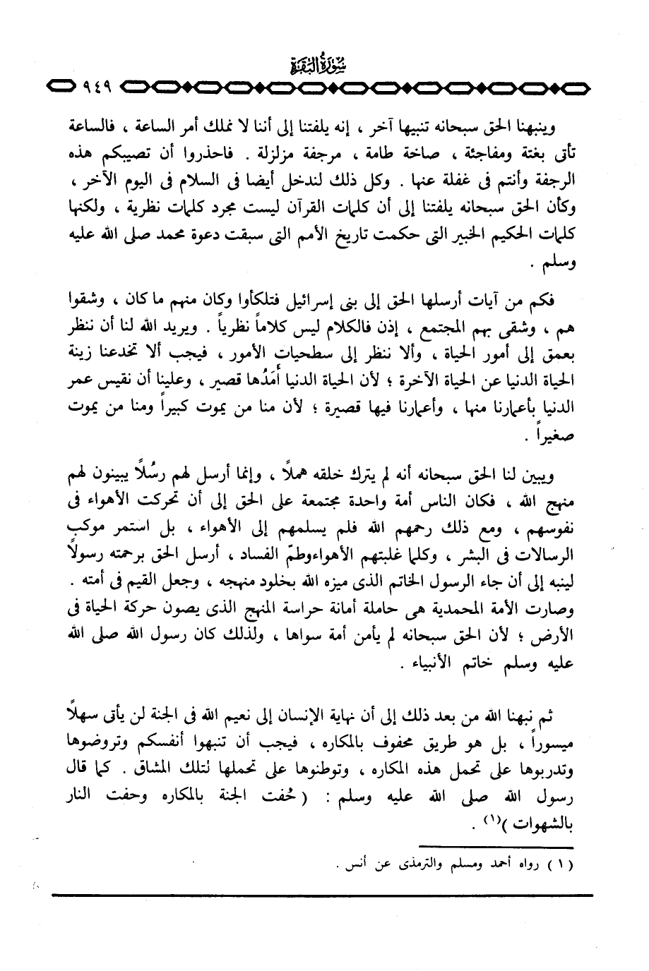 ثم نبهنا الله من بعد ذلك إلى أن نهاية الإنسان إلى نعيم الله في الجنة لن يأتي سهلاً ميسوراً، بل هو طريق محفوف بالمكارة، فيجب أن تنبهوا أنفسكم وتروضوها وتدربوها على تحمل هذه المكاره، وتوطنوها على تحملها لتلك المشاق. كما قال رسول الله صَلَّى اللَّهُ عَلَيْهِ وَسَلَّم َ: «حفت الجنة بالمكاره وحفت النار بالشهوات» .