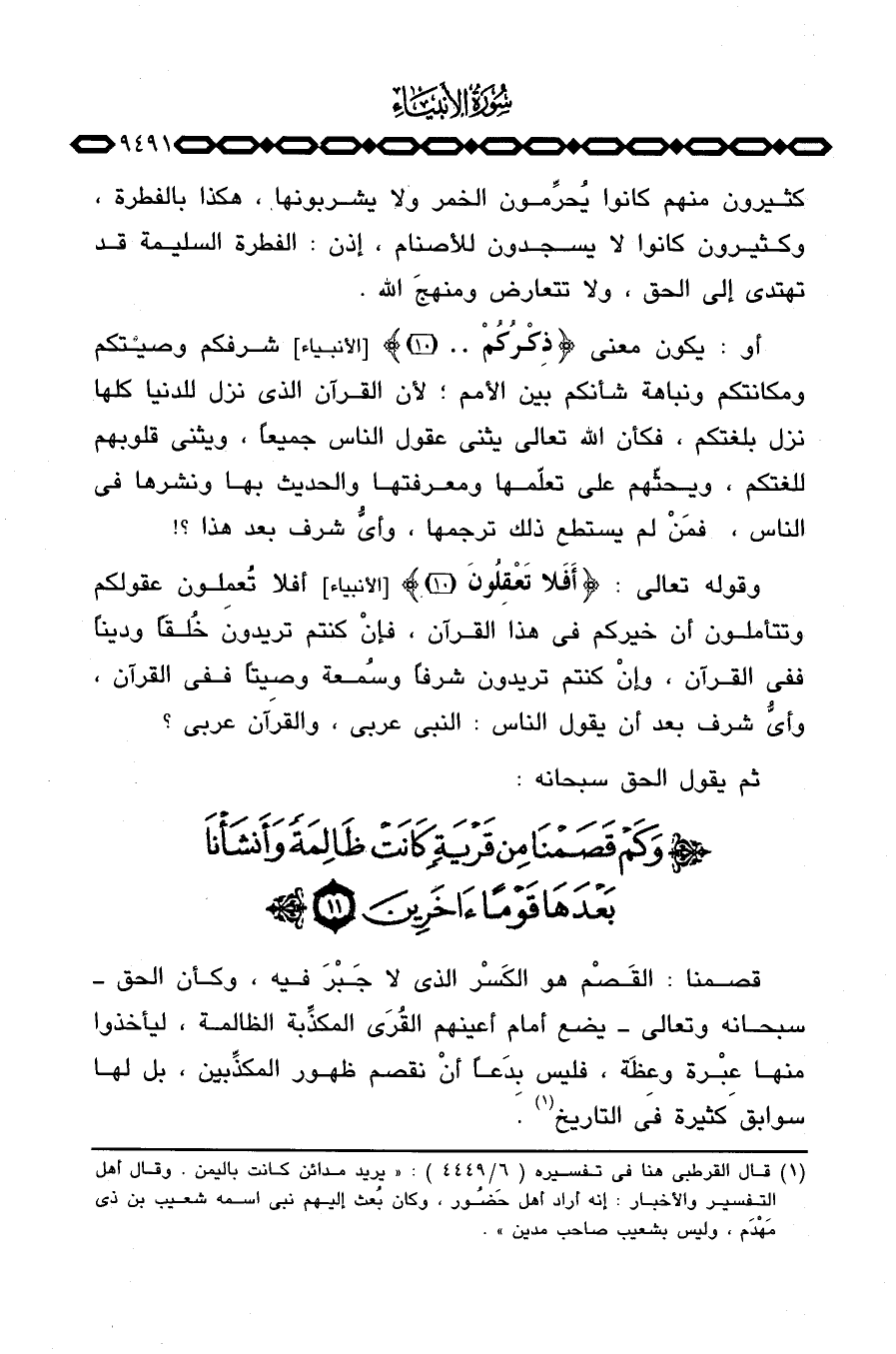 أو: يكون معنى {ذِكْرُكُمْ ... } [الأنبياء: 10] شرفكم وصيْتكم ومكانتكم ونباهة شأنكم بين الأمم؛ لأن القرآن الذي نزل للدنيا كلها نزل بلغتكم، فكأن الله تعالى يثني عقول الناس جميعاً، ويثني قلوبهم للغتكم، ويحثّهم على تعلّمها ومعرفتها والحديث بها ونشرها في الناس، فمَنْ لم يستطع ذلك ترجمها، وأيُّ شرف بعد هذا؟!