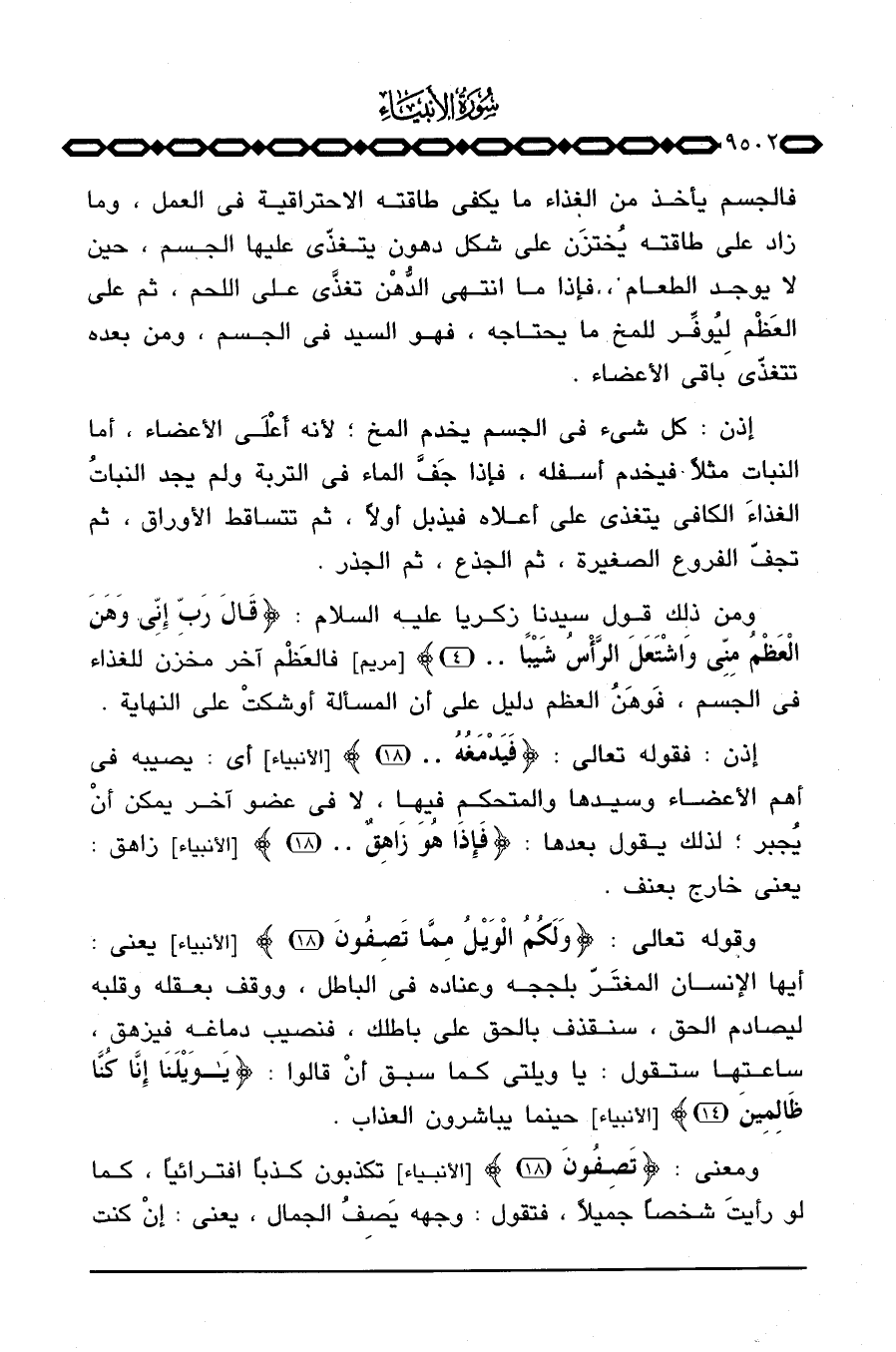 ومن ذلك قول سيدنا زكريا عليه السلام: {قَالَ رَبِّ إِنَّي وَهَنَ العظم مِنِّي واشتعل الرأس شَيْباً ... } [مريم: 4] فالعَظْم آخر مخزَن للغذاء في الجسم، فَوهَنُ العظم دليل على أن المسألة أوشكتْ على النهاية.