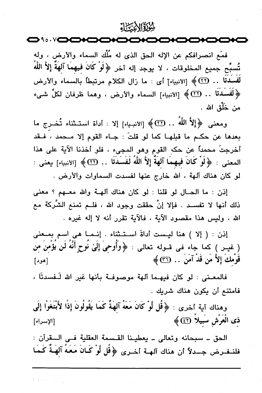 ومعنى {إِلاَّ الله ... } [الأنبياء: 22] إلا: أداة استثناء تُخرِج ما بعدها عن حكم ما قبلها كما لو قلتَ: جاء القوم إلا محمد، فقد أخرجتَ محمداً عن حكم القوم وهو المجيء، فلو أخذنا الآية على هذا المعنى: {لَوْ كَانَ فِيهِمَآ آلِهَةٌ إِلاَّ الله لَفَسَدَتَا ... } [الأنبياء: 22] يعني: لو كان هناك آلهة، الله خارج عنها لفسدت السماوات والأرض.