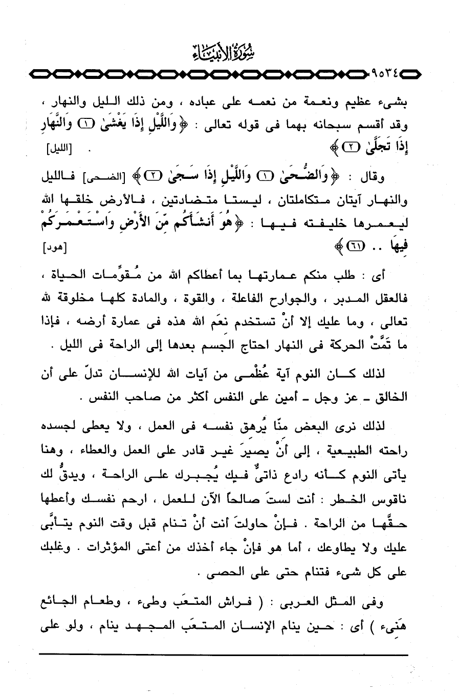 بشيء عظيم ونعمة من نعمه على عباده، ومن ذلك الليل والنهار، وقد أقسم سبحانه بهما في قوله تعالى: {والليل إِذَا يغشى والنهار إِذَا تجلى} [الليل: 1 - 2] وقال: {والضحى والليل إِذَا سجى} [الضحى: 1 - 2] فالليل والنهار آيتان متكاملتان، ليستا متضادتين، فالأرض خلقها الله ليعمرها خليفته فيها: {هُوَ أَنشَأَكُمْ مِّنَ الأرض واستعمركم فِيهَا ... } [هود: 61] .