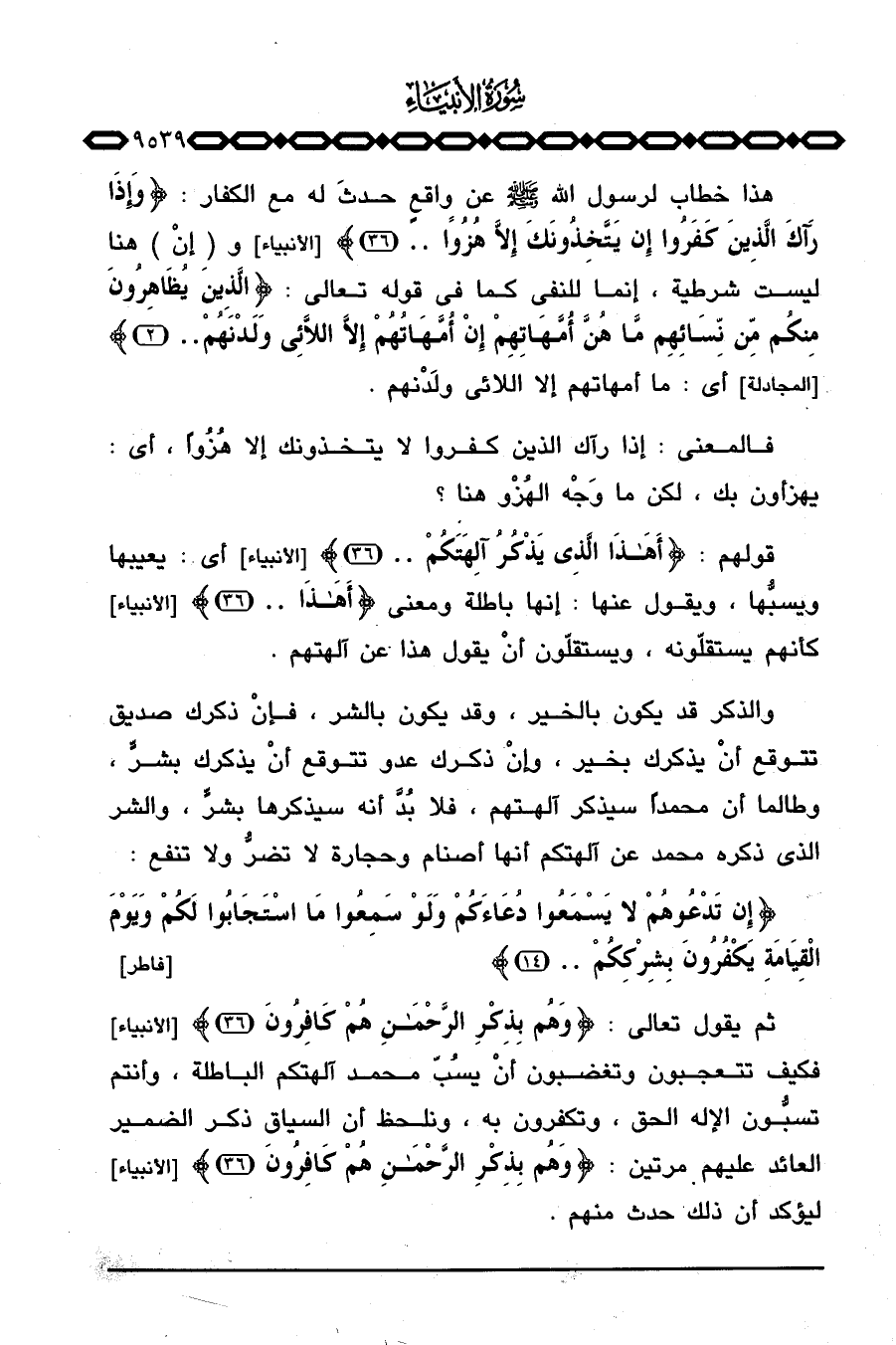 ثم يقول تعالى: {وَهُمْ بِذِكْرِ الرحمن هُمْ كَافِرُونَ} [الأنبياء: 36] فكيف تتعجبون وتغضبون أنْ يسُبّ محمد آلهتكم الباطلة، وأنتم تسبُّون الإله الحق، وتكفرون به، ونلحظ أن السياق ذكر الضمير العائد عليهم مرتين: {وَهُمْ بِذِكْرِ الرحمن هُمْ كَافِرُونَ} [الأنبياء: 36] ليؤكد أن ذلك حدث منهم.