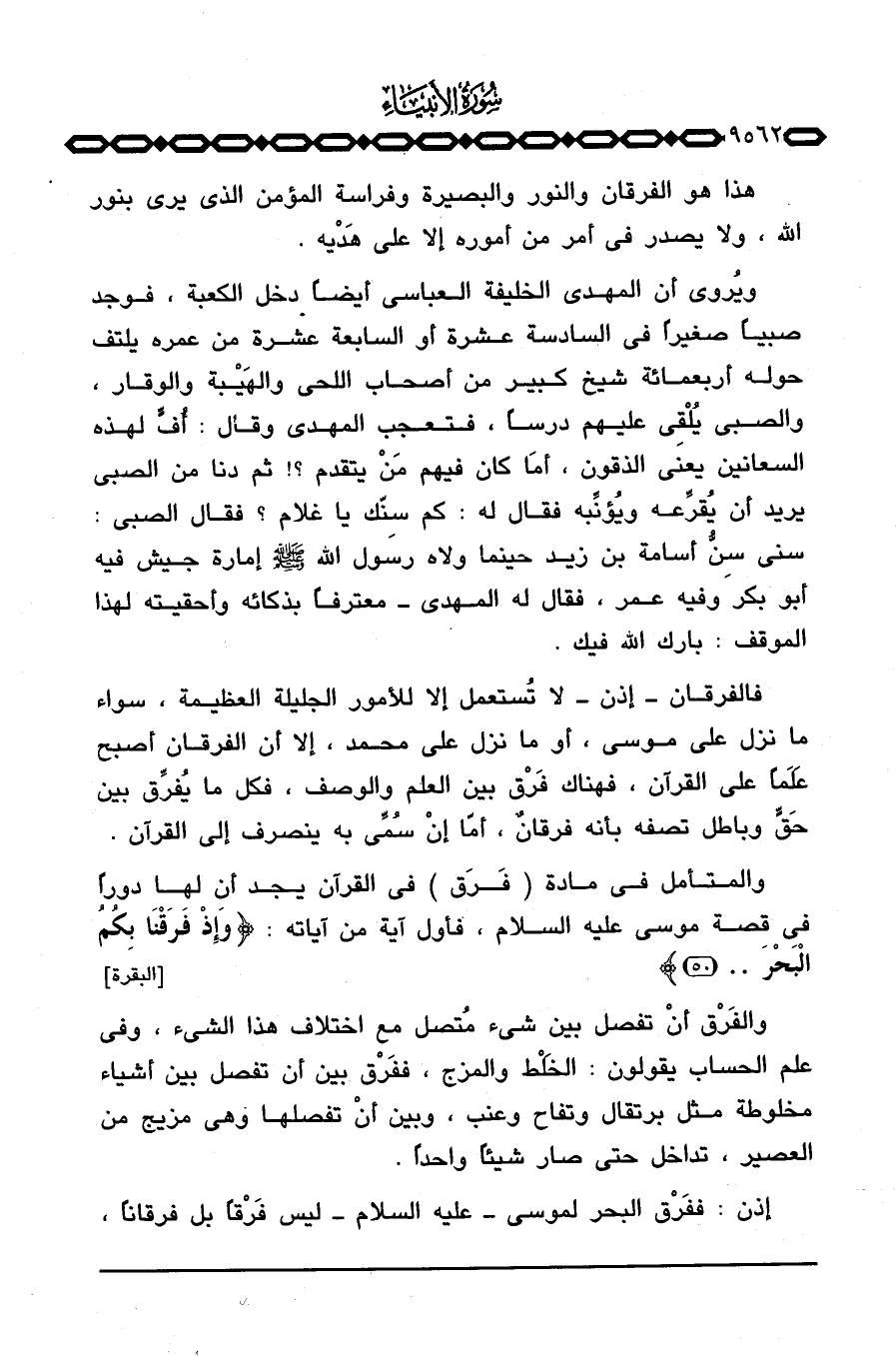 هذا هو الفرقان والنور والبصيرة وفراسة المؤمن الذي يرى بنور الله، ولا يصدر في أمر من أموره إلا على هَدْيه.