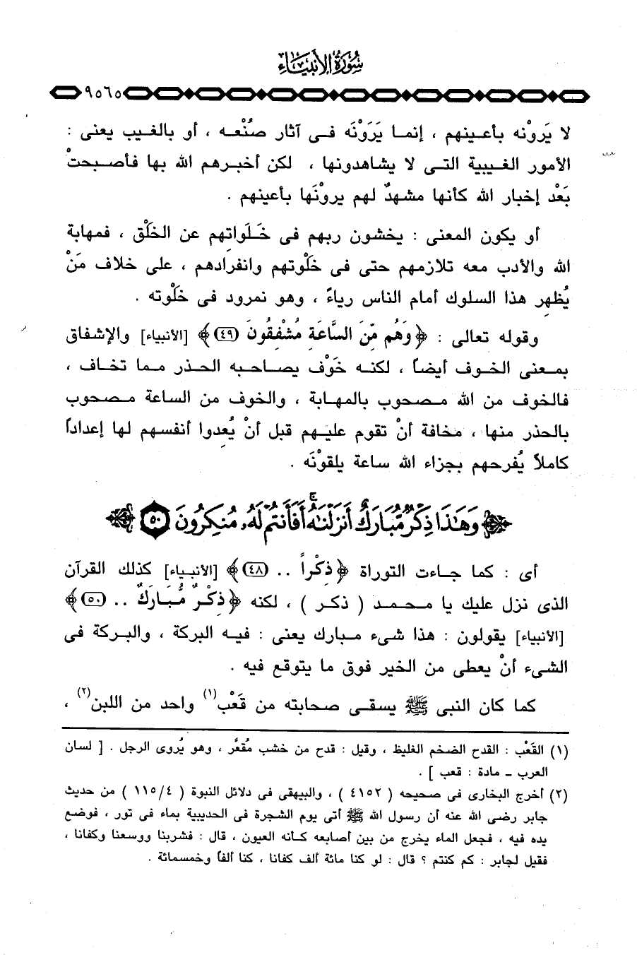 وقوله تعالى: {وَهُمْ مِّنَ الساعة مُشْفِقُونَ} [الأنبياء: 49] والإشفاق بمعنى الخوف أيضاً، لكنه خَوْفَ يصاحبه الحذر مما تخاف، فالخوف من الله مصحوب بالمهابة، والخوف من الساعة مصحوب بالحذر منها، مخافة أنْ تقوم عليهم قبل أنْ يُعِدوا أنفسهم لها إعداداً كاملاً يُفرحهم بجزاء الله ساعة يلقوْنَه. {وهذا ذِكْرٌ مُّبَارَكٌ ... } .
