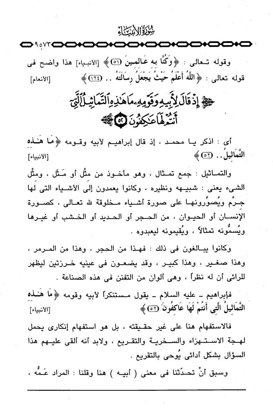 فإبراهيم - عليه السلام - يقول مستنكراً لأبيه وقومه {مَا هذه التماثيل التي أَنتُمْ لَهَا عَاكِفُونَ} [الأنبياء: 52] .