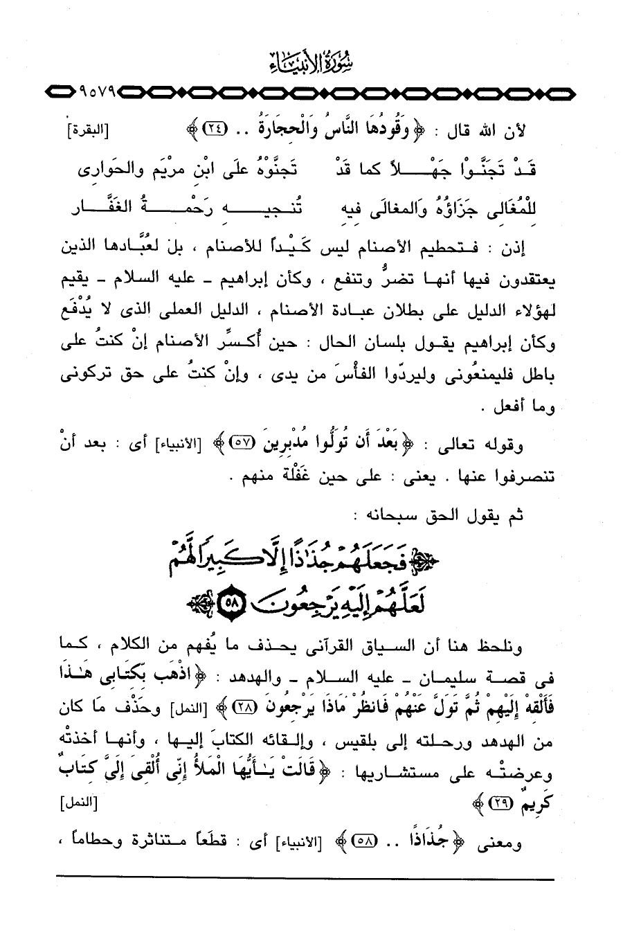 ثم يقول الحق سبحانه: {فَجَعَلَهُمْ جُذَاذاً إِلاَّ كَبِيراً ... } .