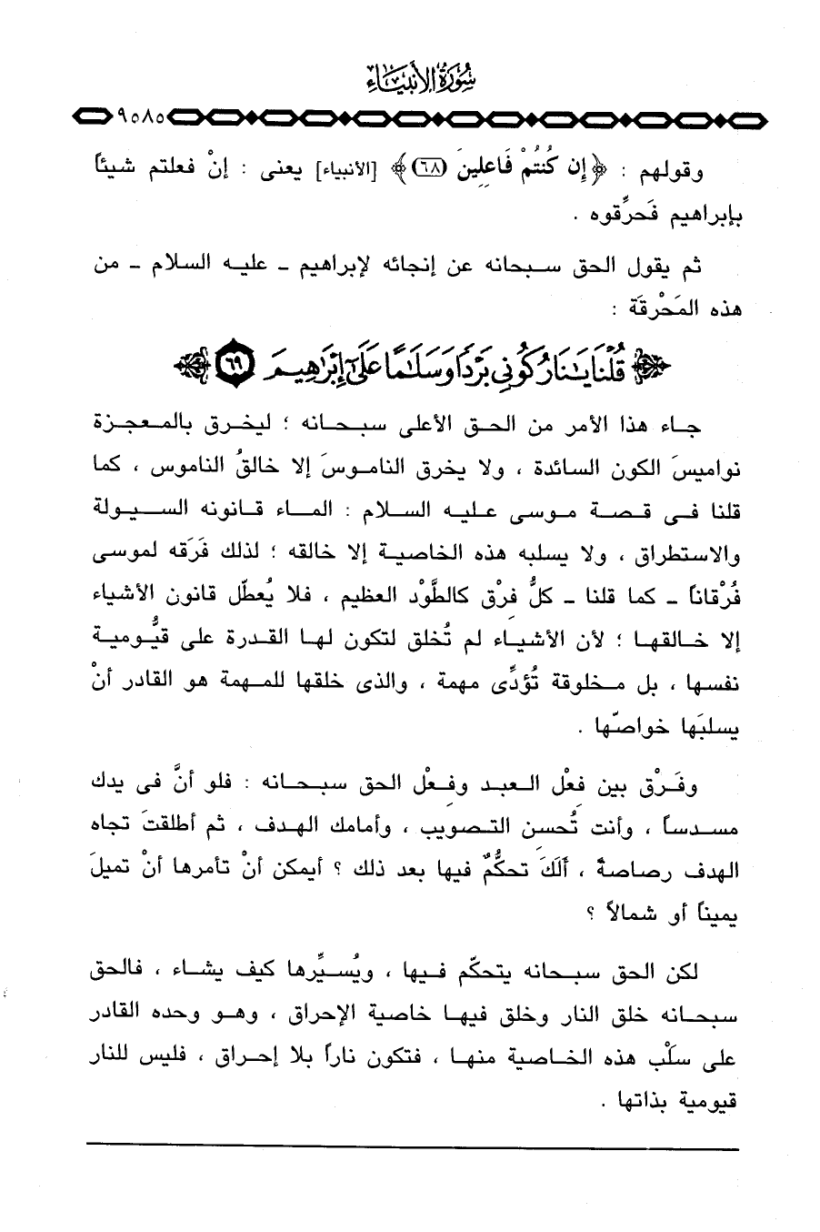 لكن الحق سبحانه يتحكّم فيها، ويُسيِّرها كيف يشاء، فالحق سبحانه خلق النار وخلق فيها خاصية الإحراق، وهو وحده القادر على سَلْب هذه الخاصية منها، فتكون ناراً بلا إحراق، فليس للنار قيومية بذاتها.