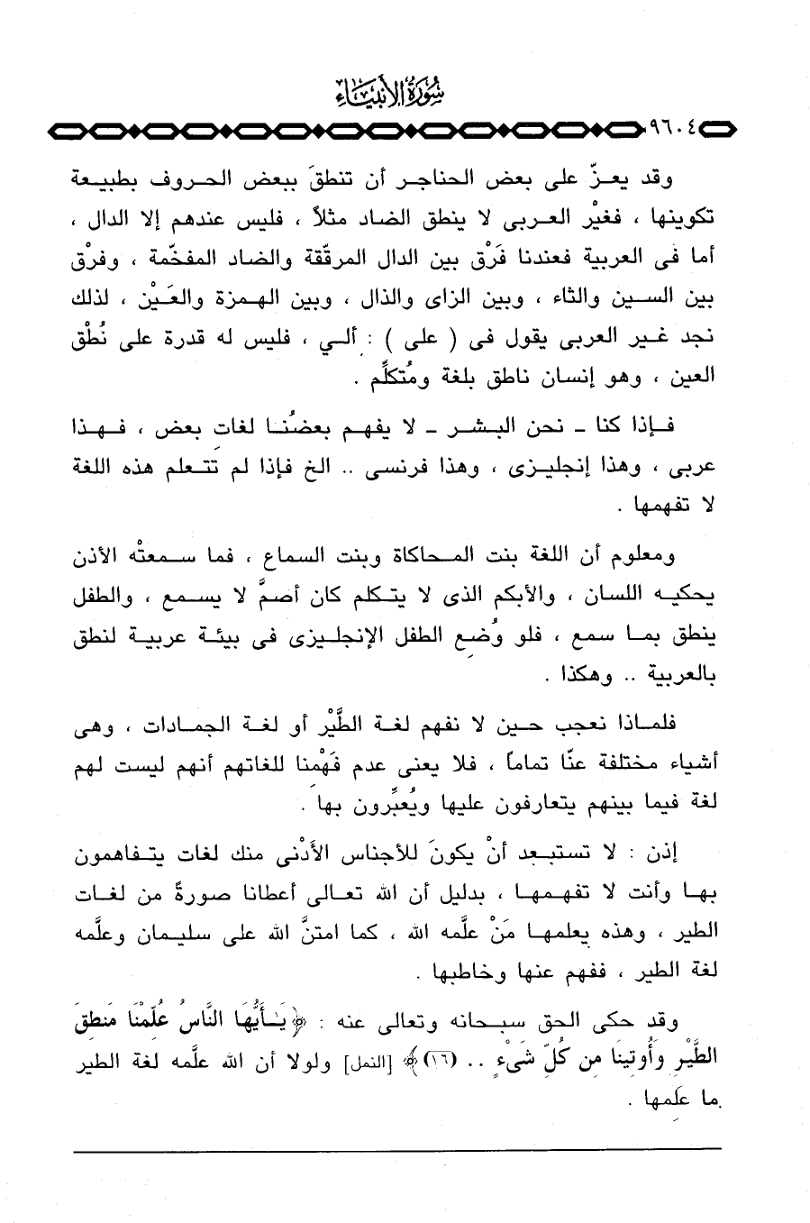 فإذا كنا - نحن البشر - لا يفهم بعضُنا لغاتِ بعض، فهذا عربي، وهذا إنجليزي، وهذا فرنسي. . إلخ فإذا لم تتعلم هذه اللغة لا تفهمها.
