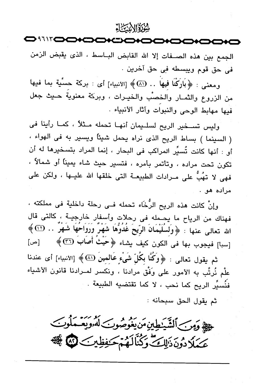 ومعنى: {بَارَكْنَا فِيهَا ... } [الأنبياء: 81] أي: بركة حِسِّية بما فيها من الزروع والثمار والخِصْب والخيرات، وبركة معنوية حيث جعل فيها مهابط الوحي والنبوات وآثار الأنبياء.