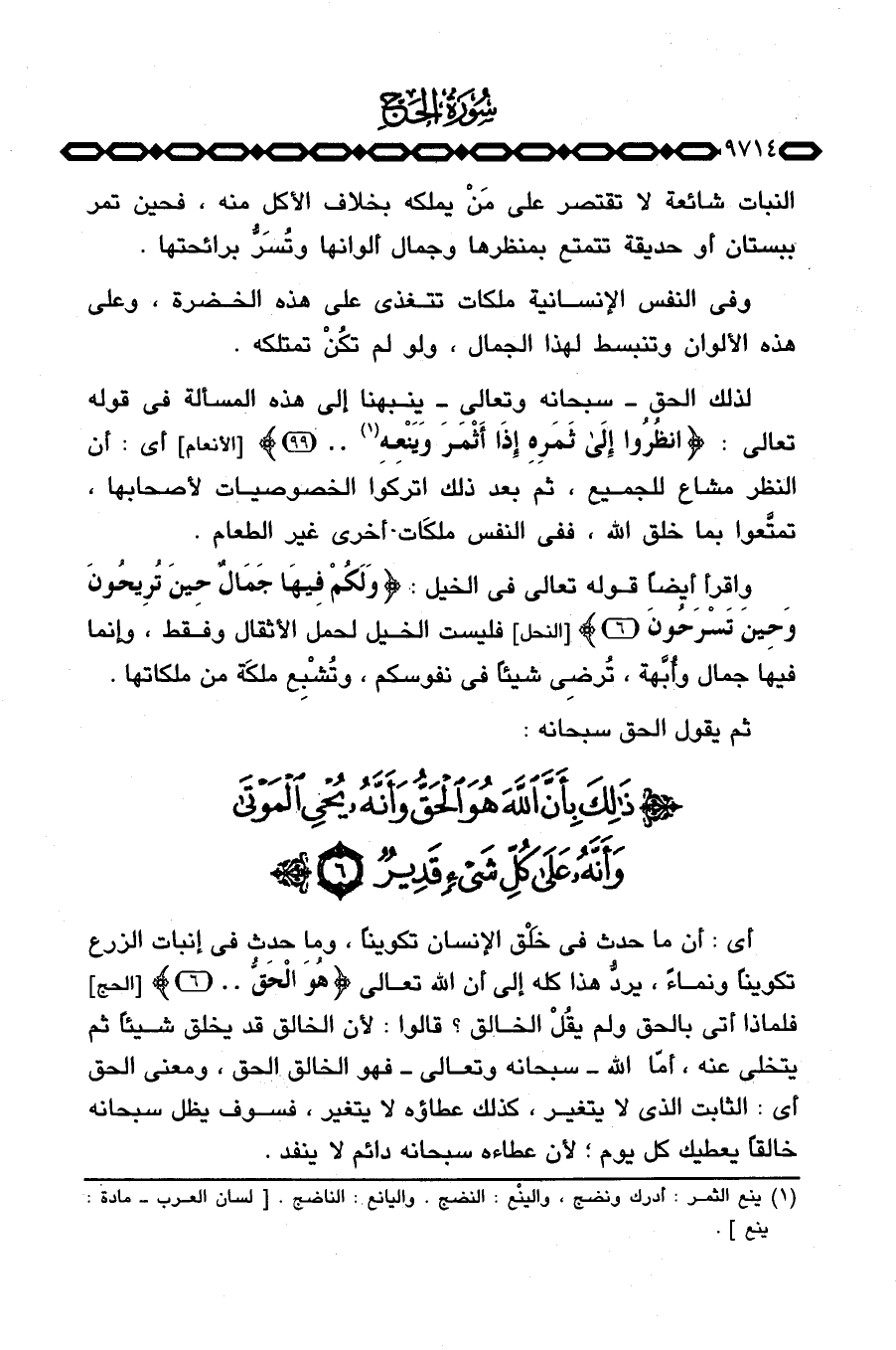 واقرأ أيضاً قوله تعالى في الخيل: {وَلَكُمْ فِيهَا جَمَالٌ حِينَ تُرِيحُونَ وَحِينَ تَسْرَحُونَ} [النحل: 6] فليست الخيل لحمل الأثقال وفقط، وإنما فيها جمال وأُبَّهة، تُرضِي شيئاً في نفوسكم، وتُشْبِع ملكَة من ملكاتها.